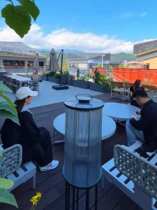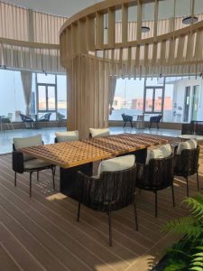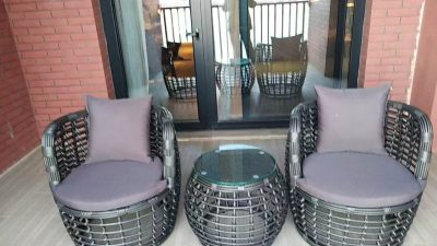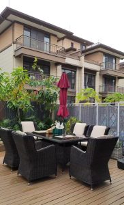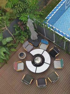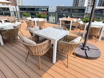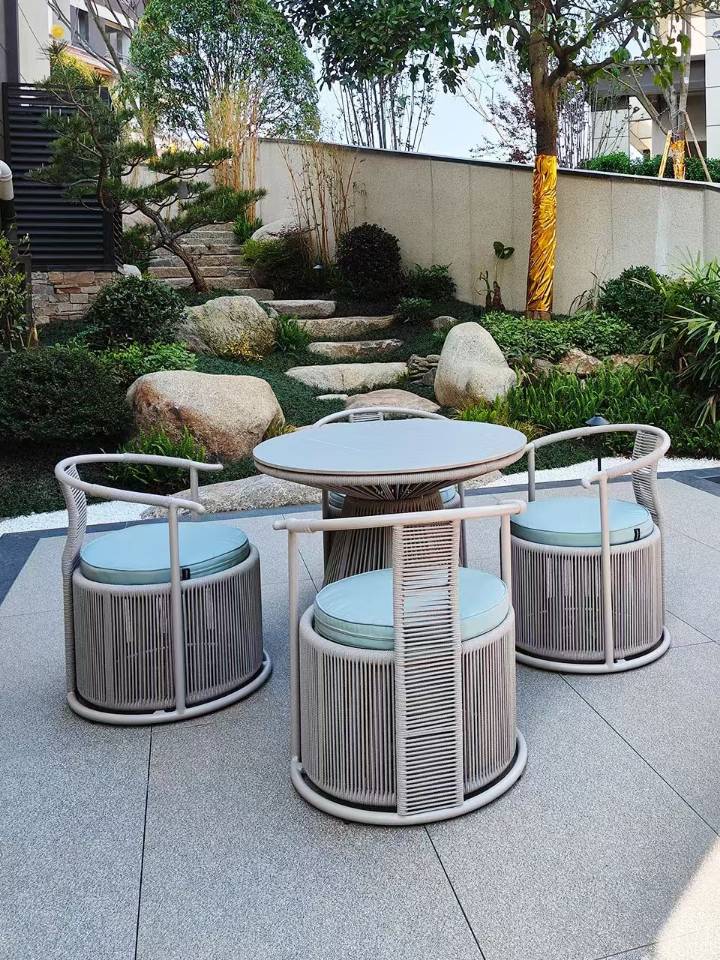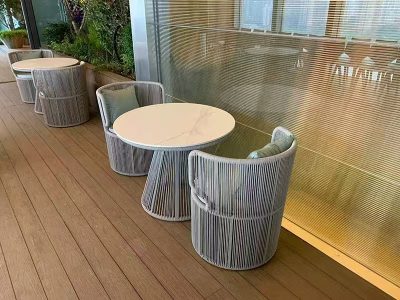 Outdoor Plastic Wood Table and Chair Courtyard Waterproof Sunscreen Outdoor Balcony Garden Terrace Outdoor Table and Chair